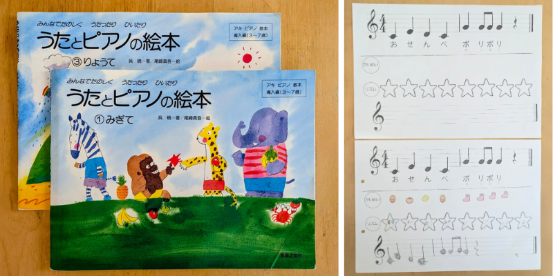 ピアノ教本は、メトードローズ、ピアノドリーム、みんなのオルガンピアノの本などから、年齢や個性、ご希望に合わせて決めていきます