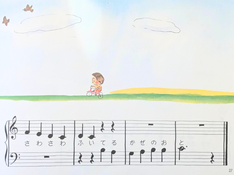 また、音符に指番号が書かれていないので、音符だけで楽譜を読む力が付きます。